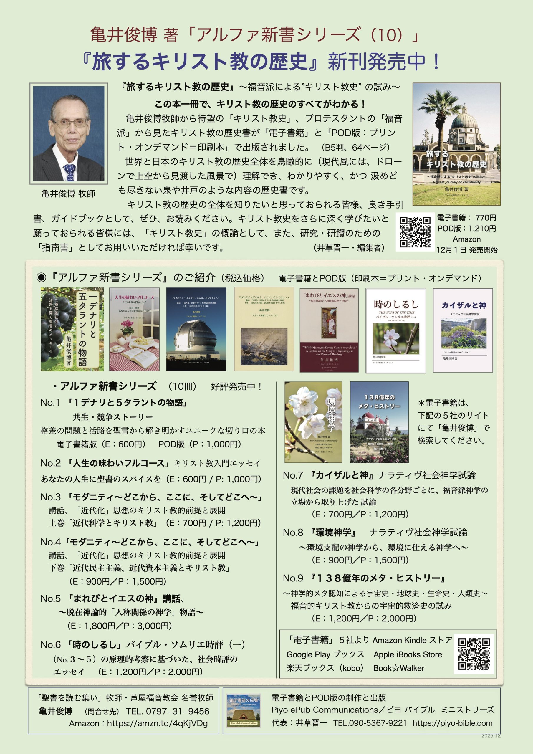 亀井俊博牧師から、待望の「キリスト教史」、プロテスタントの「福音派」から見たキリスト教の歴史書が「電子書籍」と「POD版:プリントオンデマンド=印刷本」で出版されました。