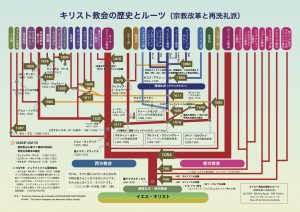 また、宗教改革の箇所では、「キリスト教会の歴史とルーツ」のチャートも掲載されています。